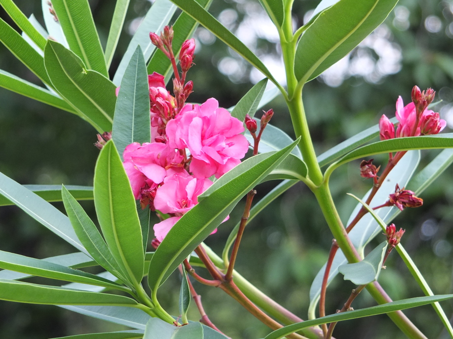 園内の随所で見かけるのは、中国原産のヤブカンゾウ(藪萱草)です。八重咲きで濃いオレンジ色が特徴でよく目立ちます。林地や池辺などに野生化して咲いています。草丈は1~2mと高く育ち、匍匐茎を出して拡がります。